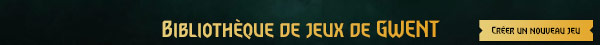En ce qui concerne la création des jeux, si vous voulez savoir ce qui a actuellement la cote dans GWENT, la bibliothèque de jeux officielle de GWENT répondra à vos besoins. Elle vous permet de voir ce que proposent les experts en création de jeu de la communauté ! |